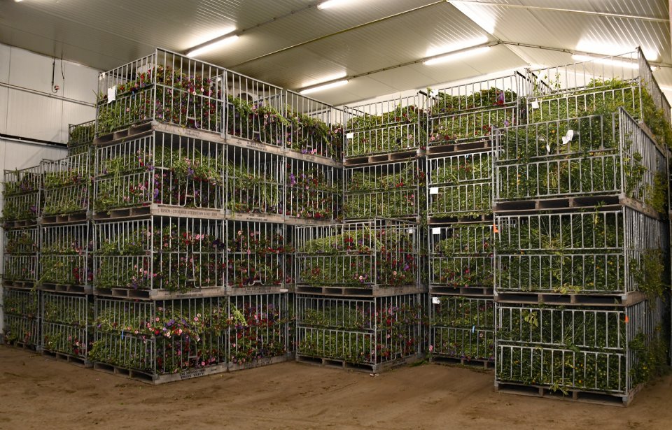Aan de lijnen staan dames bloemen te sorteren. Ze worden doorlopend bevoorraad. Een andere medewerker rijdt de volle Deense karren naar de koelcellen. Boven de lijnen hangt een soort scorebord. 'Daarop kunnen wij aangeven wat we van de medewerkers verwachten en kunnen we in een oogopslag zien of het goed loopt. Is dat ergens niet het geval, dan kunnen we snel kijken wat er aan de hand is', legt eigenaar Timo Steenwijk uit.