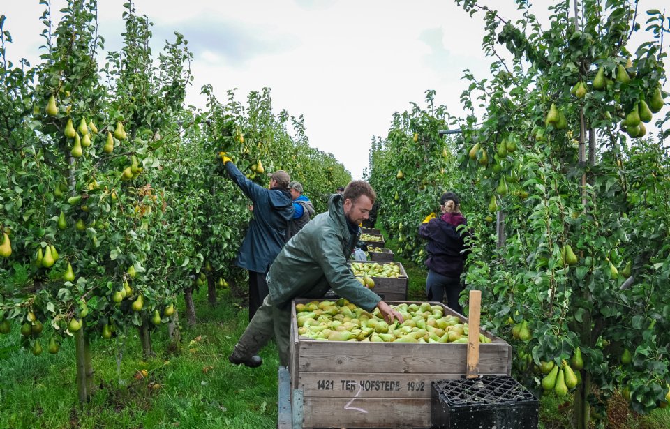 De ondernemer gaat vanaf nu verder met de pluk van andere rassen en dat duurt tot ongeveer half oktober. 'De oogstperiode sluit goed aan op het werk in de tulpen.' Naast Conference teelt Ter Hofstede elf andere perenrassen. Dit geeft kleur aan het familiebedrijf waarin ook zijn vader en oom volop meewerken.