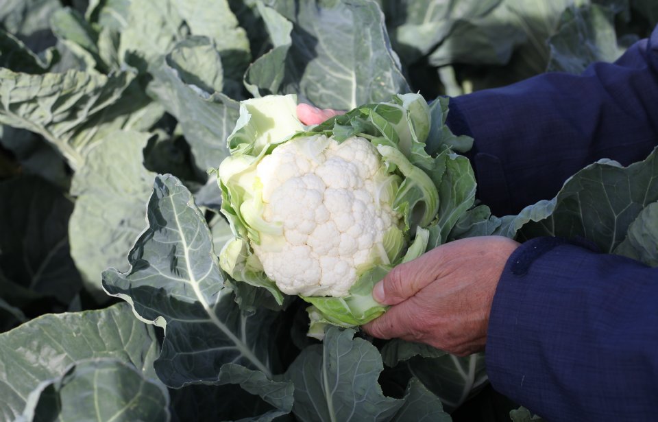 Een stukje verderop in Grootebroek presenteert Syngenta Seeds het bloemkoolrassensegment 'New White'. Deze rassen zijn speciaal ontwikkeld om niet te hoeven worden bedekt tegen de zon, wat van belang is om geelverkleuring te voorkomen. 'Dergelijke rassen bestaan naast variëteiten met een grote mate van zelfdekbaarheid. Dit is de gangbare methode om de kool te beschermen tegen verkleuring door de zon', legt Pim Neefjes uit.