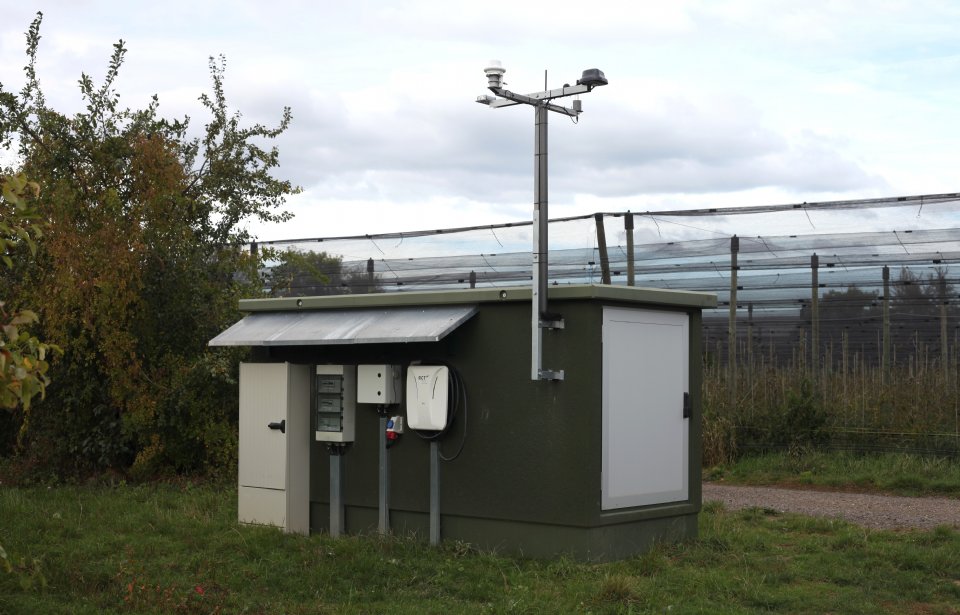 Midden tussen de boomgaarden staat een soort transformatorhuisje die is gekoppeld aan de Agri-PV-installatie. Zo denkt Nachtwey eraan om op termijn te irrigeren met stroom die is opgewekt door de Agri-PV-panelen. Daar is nu de infrastructuur nog niet voor aangelegd. Daarnaast experimenteerde hij een periode met een elektrische trekker. Ondanks dat de trekker hem goed beviel, maakt hij er nu geen gebruik meer van. De subsidie hiervoor is gestopt.