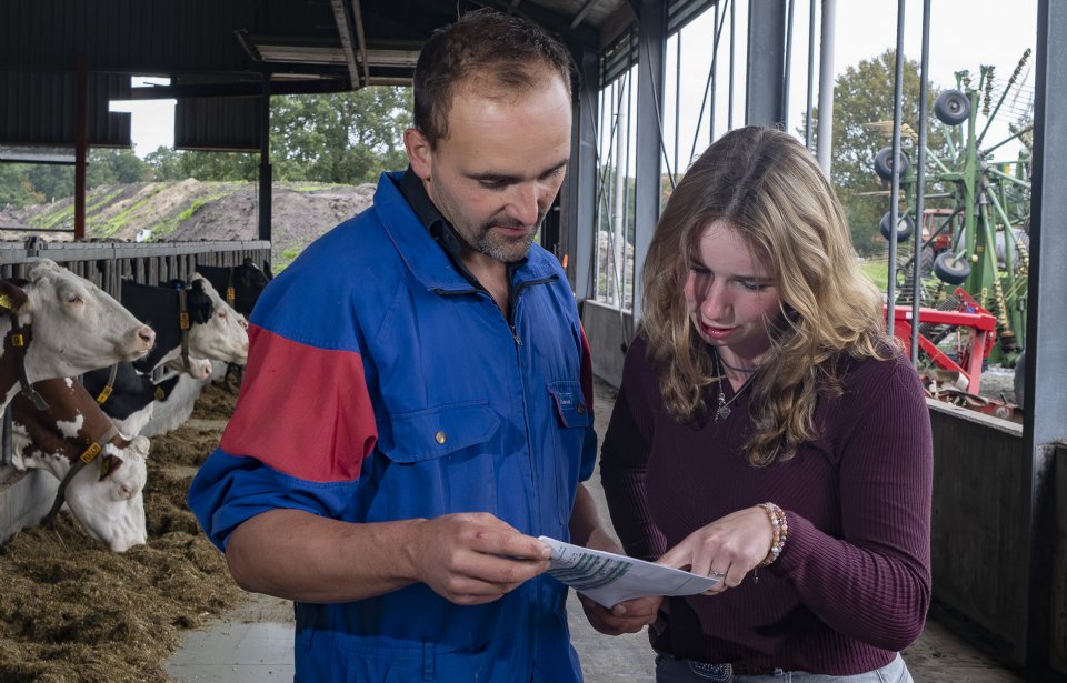 De gesprekken met de melkveehouder vindt de stagiair misschien wel het meest waardevol. 'We praten veel over toekomstvisies, over duurzaamheid en over hoe je als ondernemer keuzes maakt. Iedere boer kijkt anders naar de toekomst. Door zulke gesprekken leer je om verder te denken dan de dagelijkse werkzaamheden.'