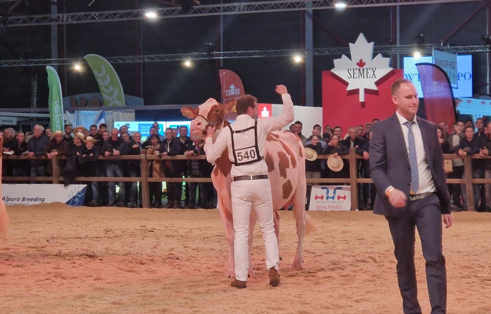 Die eervolle vermelding is voor de winnaar van de andere vaarzenrubriek roodbont. Jurylid Torben Melbaum roemde deze Tienmorgen Lonia 205 (V. Blondin Tower) van de Tienmorgen Holsteins in het Brabantse Beers vanwege de goede kruisligging en de welving in de rib.