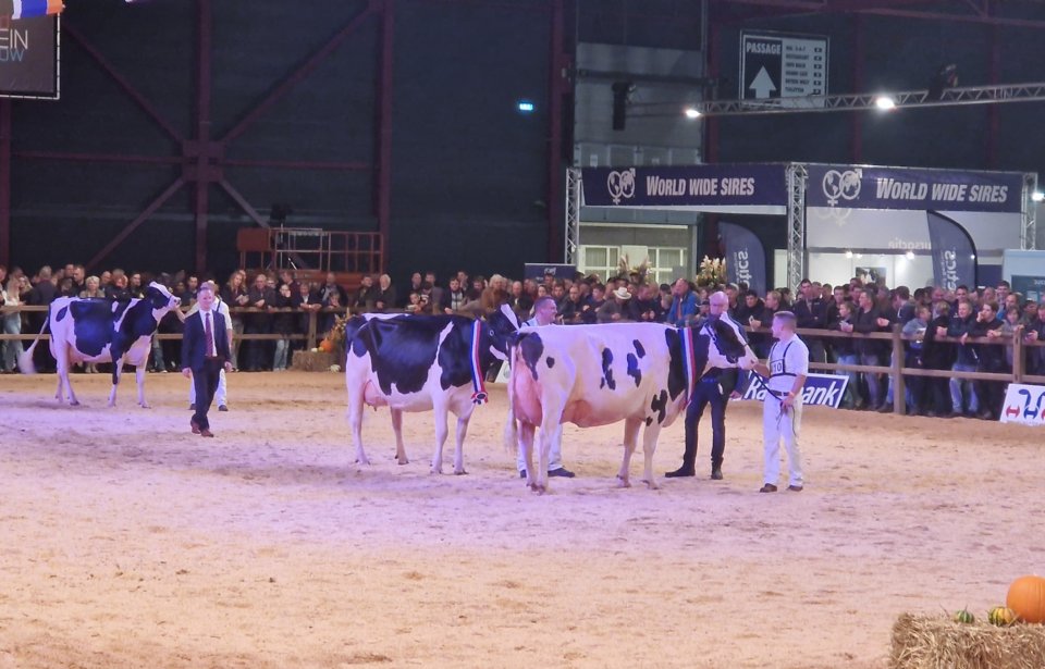 De derde op tal is hier Noorder Miss Cheers van ARGH Holsteins uit het Gelderse Noordeinde. Zij is net als de kampioen in deze klasse een dochter van Milksource Cheers. Ze werd door jurylid Iwan Morgan uit Wales geroemd vanwege haar balans in het skelet.