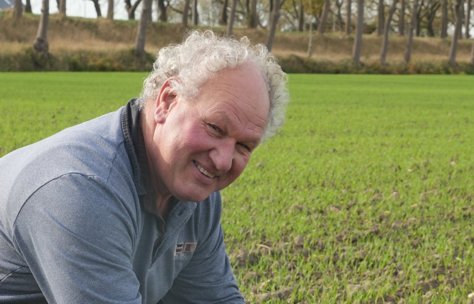 Bij de graanrassen kiest de Zuid-Hollandse ondernemer voor betrouwbaar en gezond. 'Ik wil het liefst zo min mogelijk met de spuit rijden. Het kost iedere keer veel geld. We hebben goede ervaring met een ouder ras als Residence. Dit jaar zaaide ik Lamant-wintertarwe na de bieten, op het perceel naast de boerderij. Het gewas staat er bijzonder goed op, slechts drie weken na zaaien. We zaaiden zonder ploegen, direct na de bieten.'
