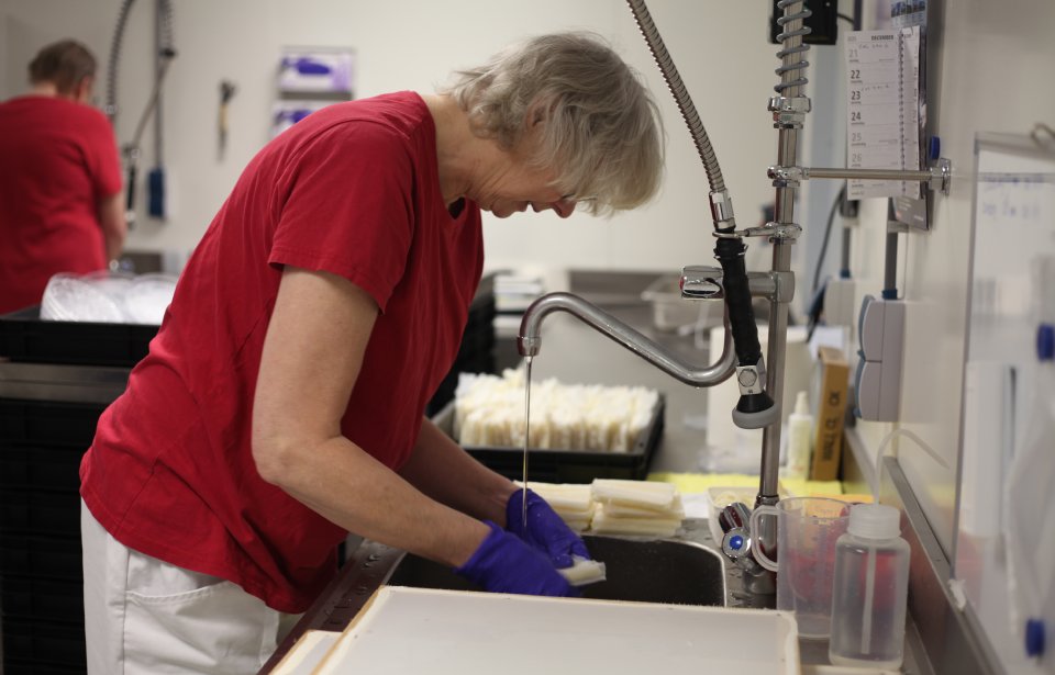 'In de tweede en derde week 'oogsten' we de eitjes. Vervolgens worden de eitjes afgespoeld, gedroogd en nauwkeurig afgewogen. De totale oogst van een ronde is ongeveer 1,5 kilo per cel', weet de kweekmedewerker.