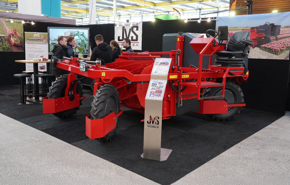 Hogervorst maakte twee stalen opslagkisten van elk 250 liter, gemonteerd aan twee kokerprofielen rond een fronttank. Daarmee is het geheel in één keer ook met heftrucklepels op te pakken. JVS Techniek toonde de nieuwe kopmachine, te krijgen op 150, 180 en 225 centimeter spoorbreedte. Naast een 7-inch bedieningsscherm is er 4WD en optioneel een cabine te krijgen.