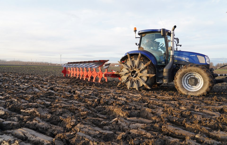 On-land, ofwel bovenover, ploegen zorgt voor minder verdichting onderin de teeltlaag. Tegelijkertijd vraagt het wel om voldoende grip van de trekker. De juiste bandenkeuze of een stappenwiel kan uitkomst bieden, blijkt uit een demo in het Flevolandse Zeewolde, waar verschillende ploegen in actie kwamen.