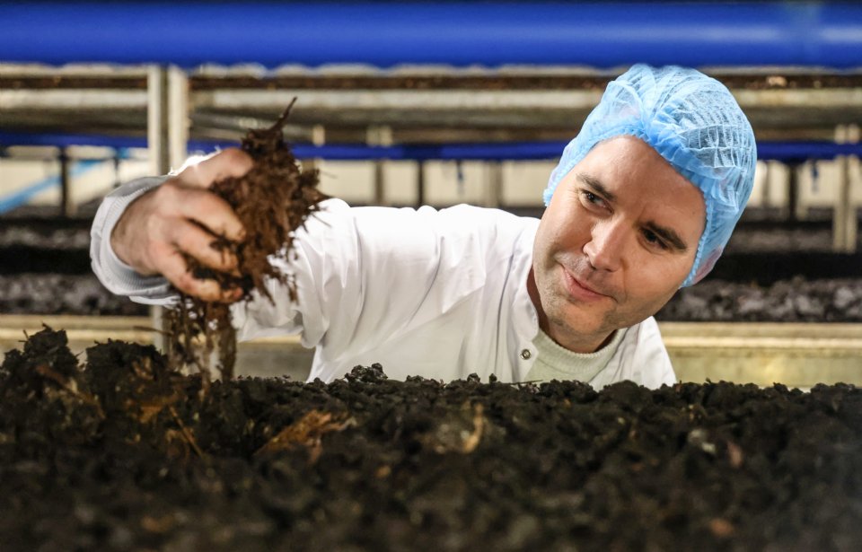 Champignons groeien het beste op compost van paardenmest en stro. 'Dat stro verkopen wij van ons akkerbouwbedrijf aan maneges en we halen het weer op. Een composteerbedrijf maakt er voor ons compost van, doorgegroeid met myceliumdraden van de champignons. Stro is belangrijk voor de luchtigheid', legt Koolen uit.
