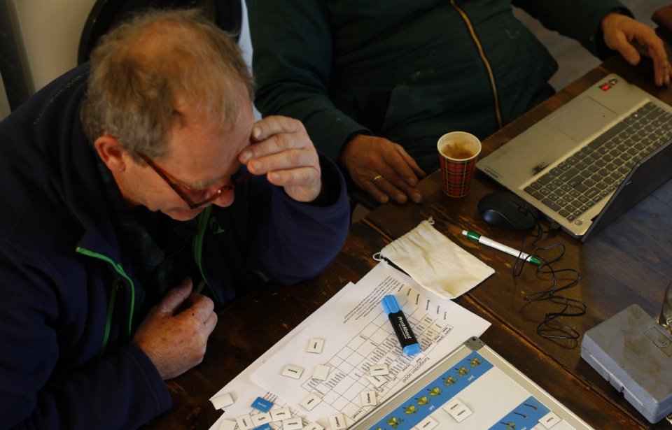 Tegen de afronding haalt de adviseur een bord en kleine vierkante partjes uit zijn tas. Op het bord staan de gewasstadia en de ziekten en plagen, op de partjes de namen van de gewasbeschermingsmiddelen. Samen met Reijer de Vree legt hij de partjes op de goede plek, terwijl Thomas de Vree de plannen invoert in zijn computer.