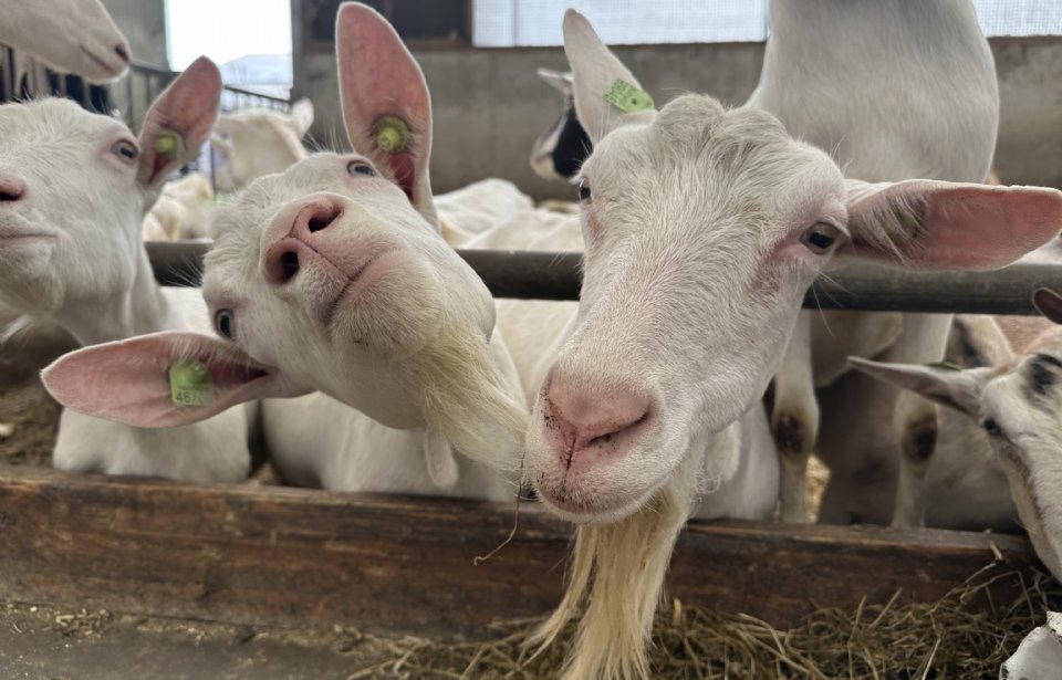 Amper een stap uit de auto en het eerste dierencontact is gelegd. Labrador Nora drukt haar hoofd bij de eerste aanraking tegen me aan om nog meer aandacht af te dwingen. In dat opzicht verschilt ze niet veel van de 650 geiten in de grote stal, die hun gemekker inzetten om ook hun portie op te eisen. Hun hals uitgestrekt, het hoofd zo ver mogelijk over het hek. Knabbelen aan de overall, een aai over de kop. Hun doel is bereikt.