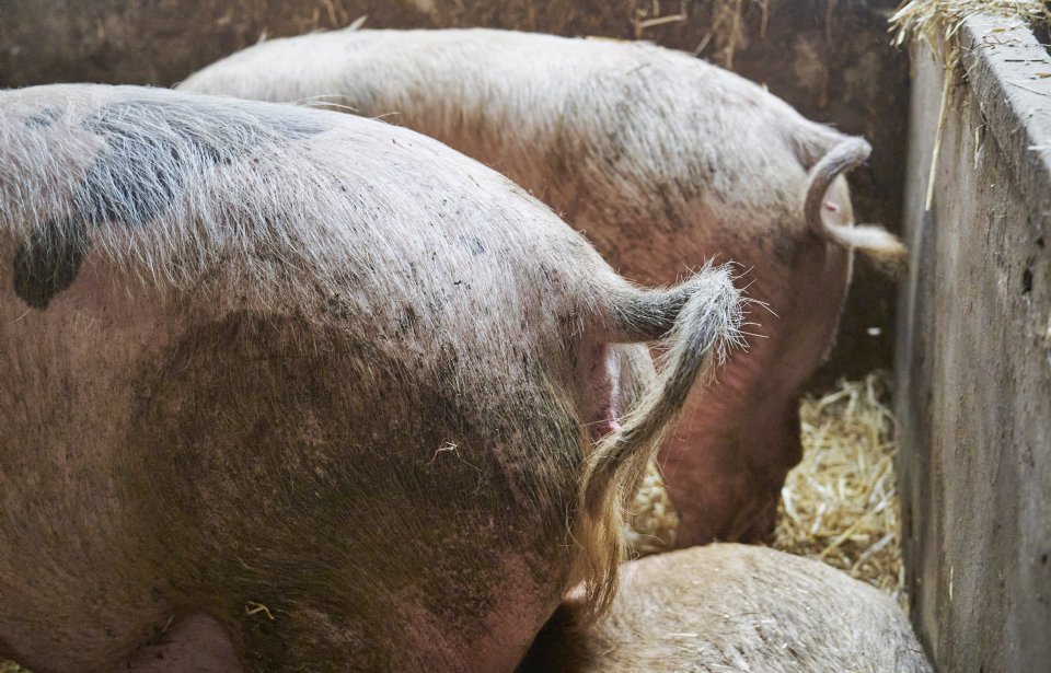 Mijn biologische varkens botvieren hun natuurlijke behoefte aan wroeten en bijten op het stro