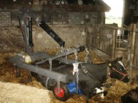 29-08-2015 - Depender komt met een Koeienambulance. Daarmee kan vee dat slecht ter been is, worden opgetild.